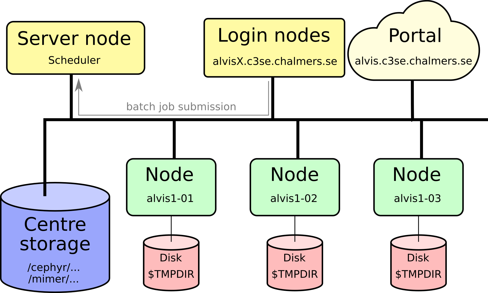 alvis1.c3se.chalmers.sehas 4 T4 GPUs for light testing and debuggingalvis2.c3se.chalmers.seis dedicated data transfer node- Will be restarted from time to time